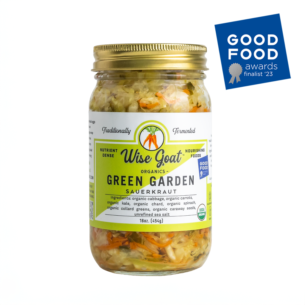 Our Green Garden Kraut is a delicious sauerkraut that includes cabbage, kale, spinach, and carrots! It’s great on it’s own, or anywhere that you would normally use sauerkraut. Simply delicious!
