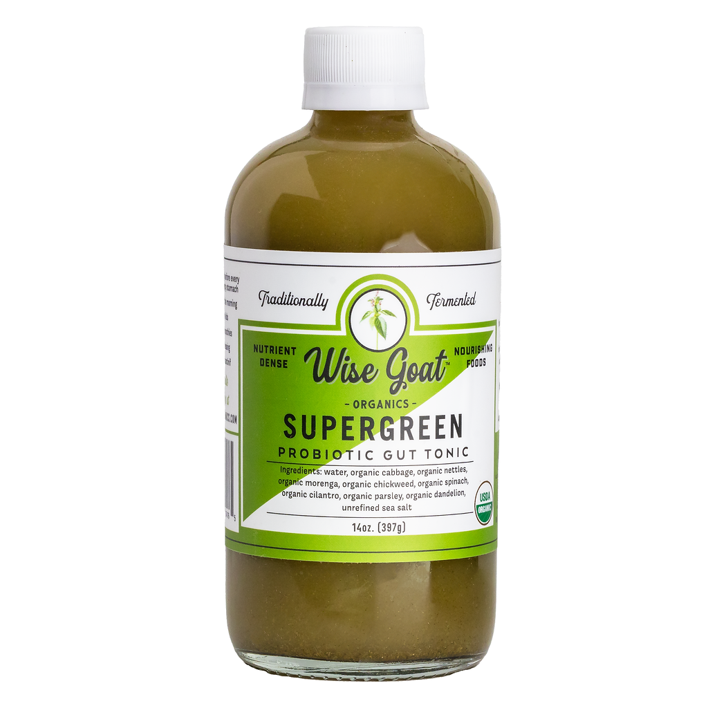 Really Hope this is back in stock soon! This Tonic is Amazing…. I have been using the GAPS diet for a major gut overhaul after years of perpetual stress and Supergreen Tonic is the perfect complement… it’s taste is refreshing and easy to take in a straight shot. The combination of Native Greens with the process of Fermentation is Brilliant! I know it takes an Extraordinary amount of Good Work and Attention to Create such a Delightful and Healing Tonic so I will wait Patiently ~ and Rejoice when it is back!! Thank You Wise Goat! :~) !